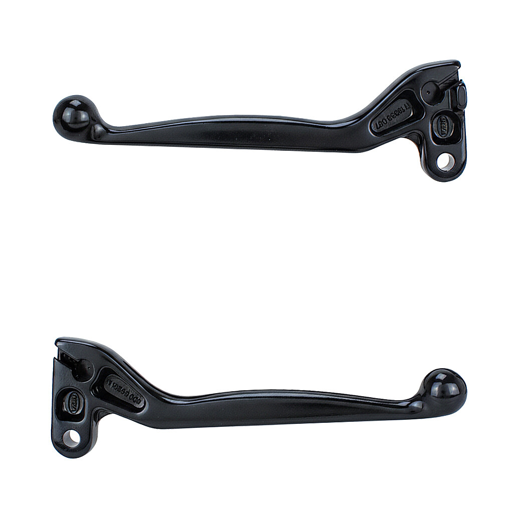 Set of aluminum levers (brake and clutch) in black anodized finish from German distributor MZA. The levers are designed for Simson motorcycles and represent a stylish replacement for the original parts.