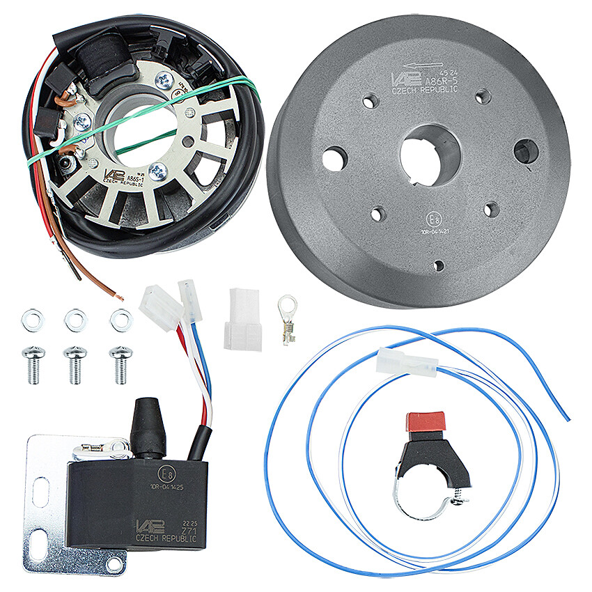 The contactless ignition for the ČZ 380 type 514 is marked SZ84 and is custom-made by the Czech company Vape.