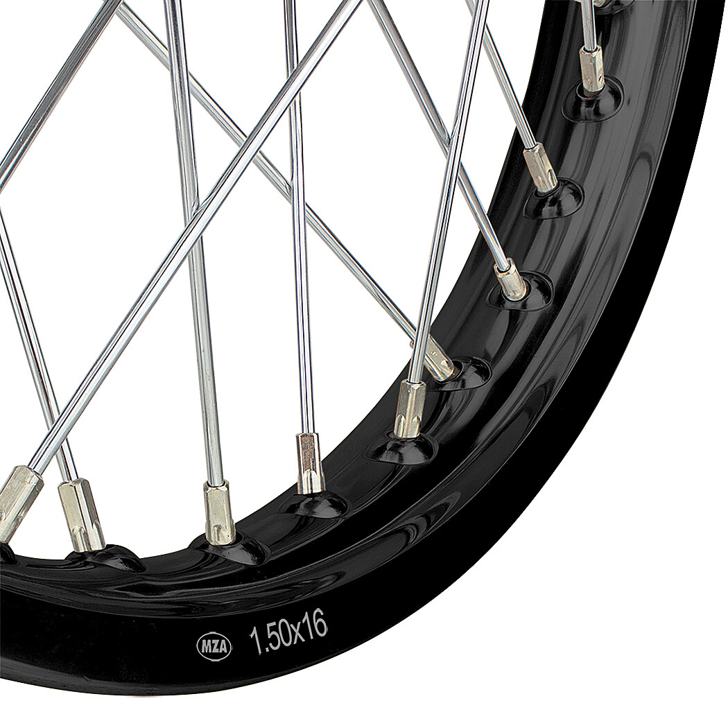 Complete wheel Simson S51 - black anodized rim 1.6x16 (chrome spoke) - MZA