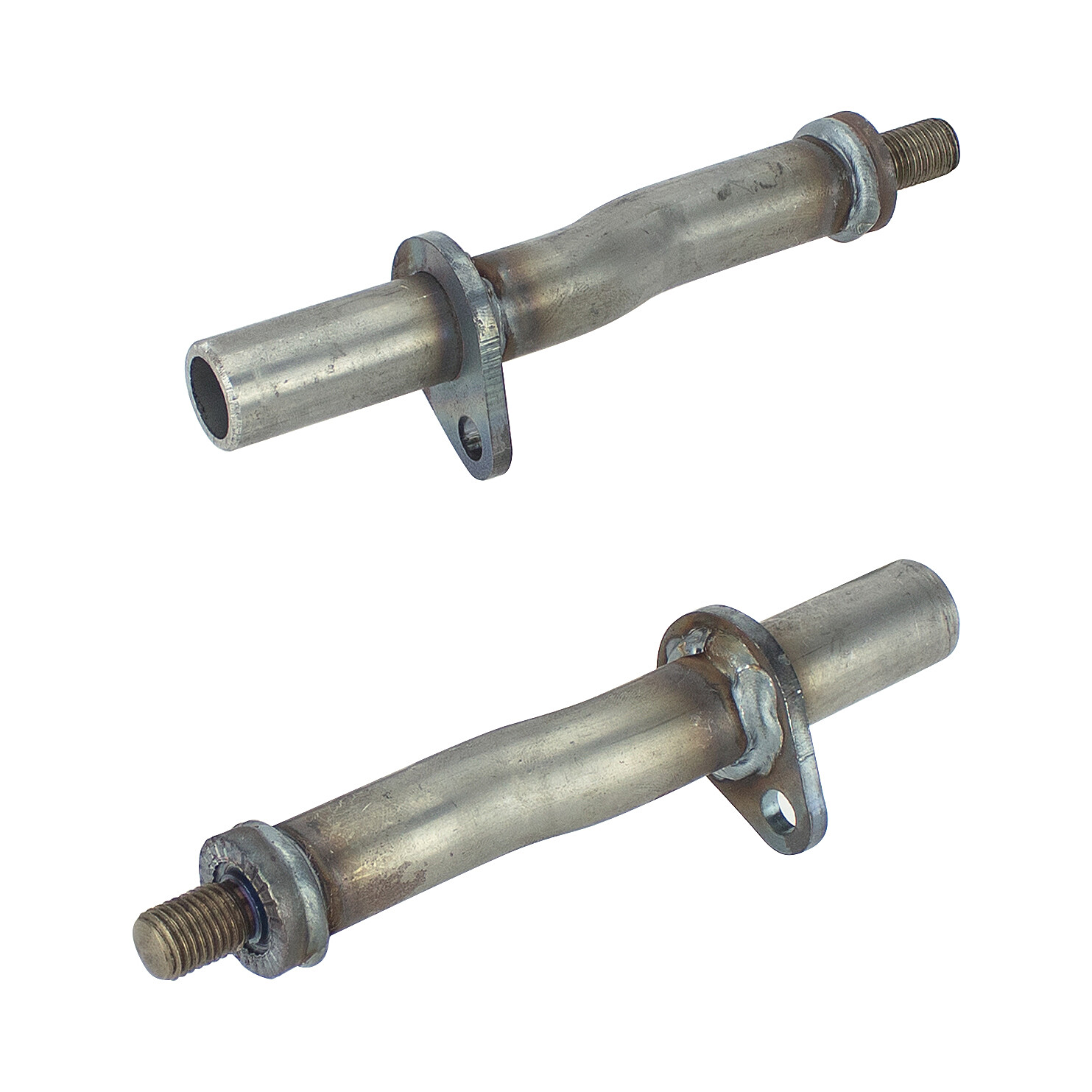Set of front footrest holders designed for the Jawa 350 Pérák motorcycle. Includes right and left tubes. Made without surface treatment - raw condition suitable for further modification.