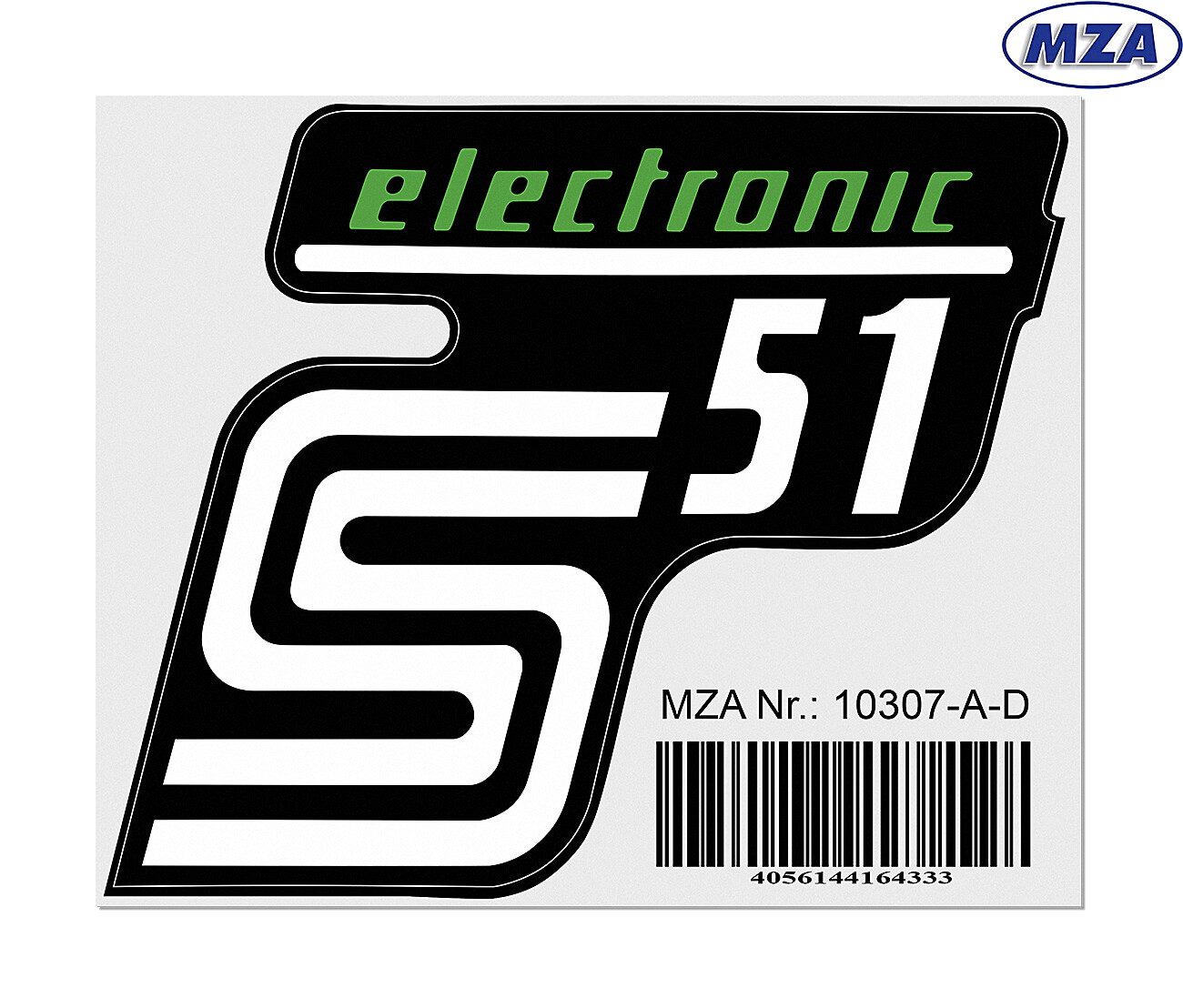 Side box sticker for Simson motorcycles in the Electronic design from the German distributor MZA. Available in several colors.
