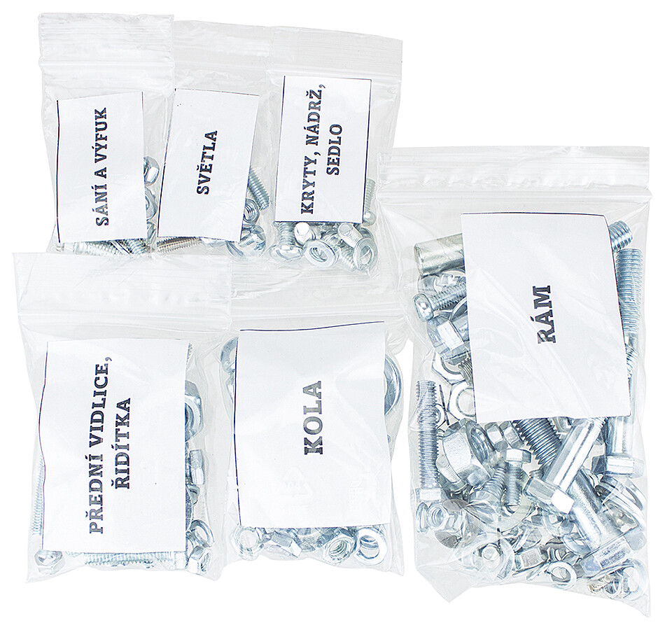 This set DOES NOT INCLUDE: Babetta 207 engine bolt set! However, it can be purchased in our e-shop: https://www.motokramek.cz/sada-sroubu-motoru-b207