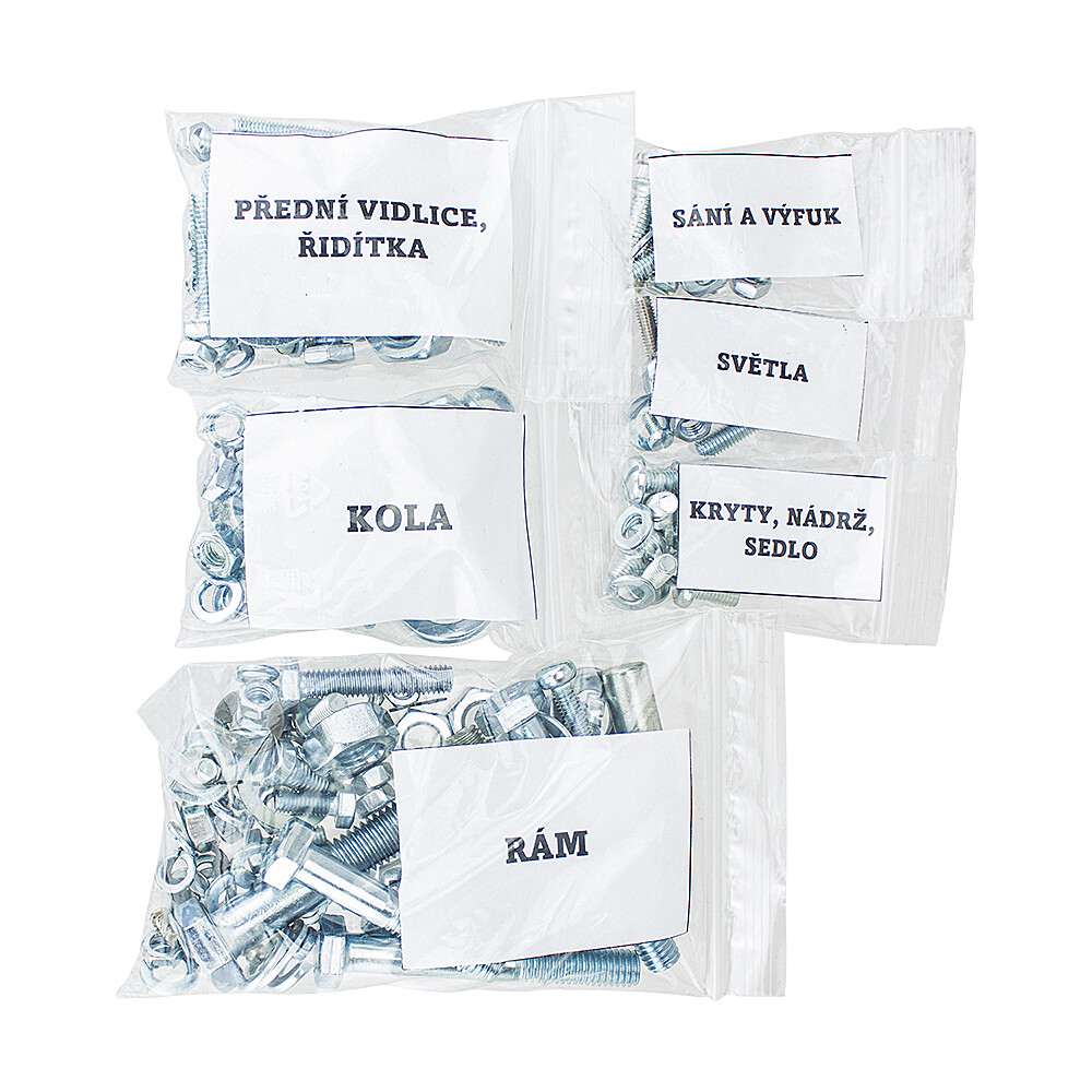 The set is divided into categories according to individual motorcycle parts, which greatly facilitates orientation and assembly: