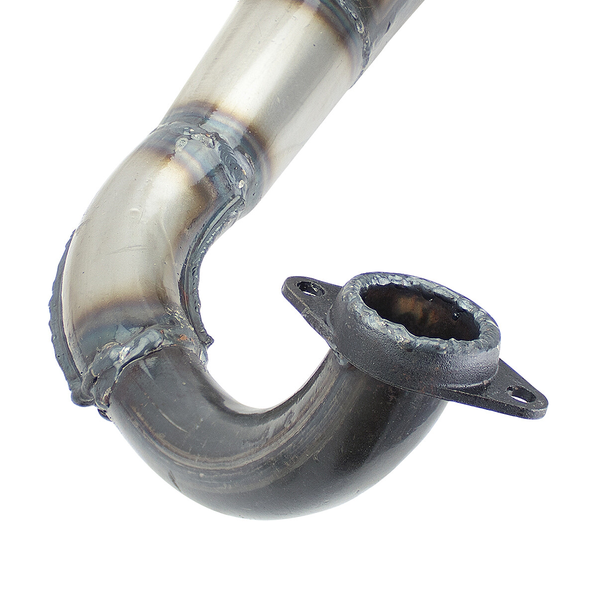 Its design ensures even flushing of the cylinder and ideal gas removal. It is composed of several parts (more or less handmade) so there may be minor abrasions on it. The surface is only painted with a colorless varnish to prevent rust. The varnish will burn off during operation and the sheet metal will not be protected in any way (this is the case with racing exhausts), after the season it is necessary to treat it in a suitable way (with baking paint, oil).