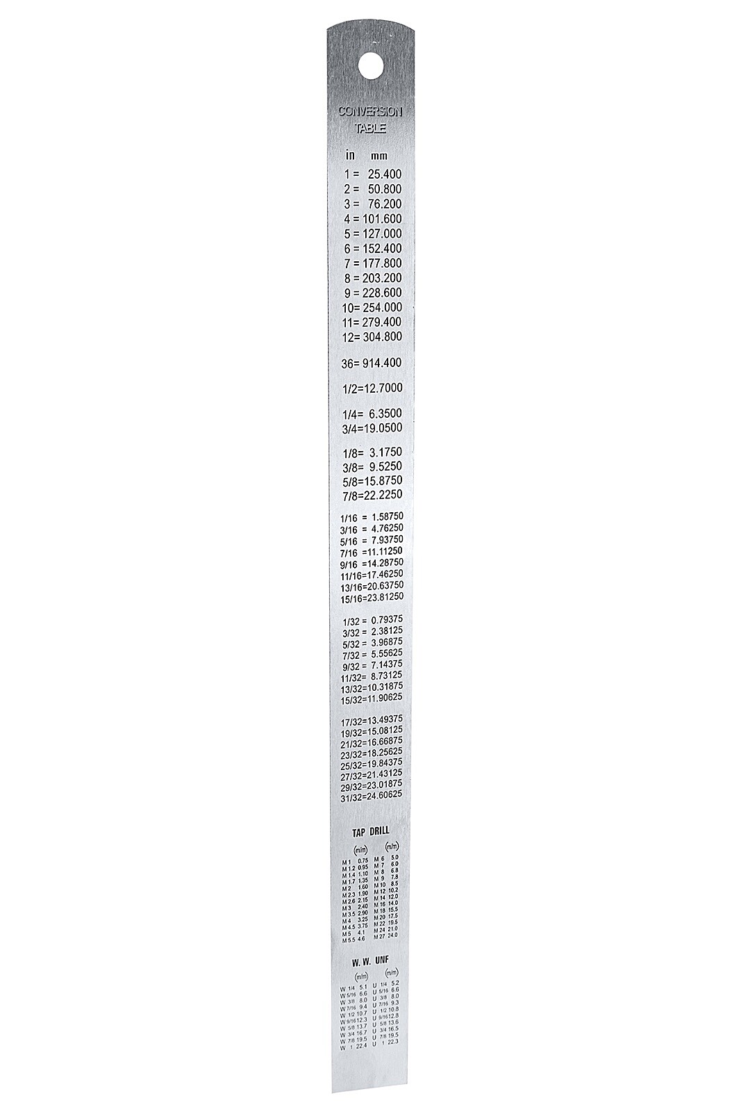 The ruler is made of stainless steel , which guarantees its long life and resistance to corrosion. The scale is in millimeters and is located on both edges . On the back you will find a practical conversion table of thread values.