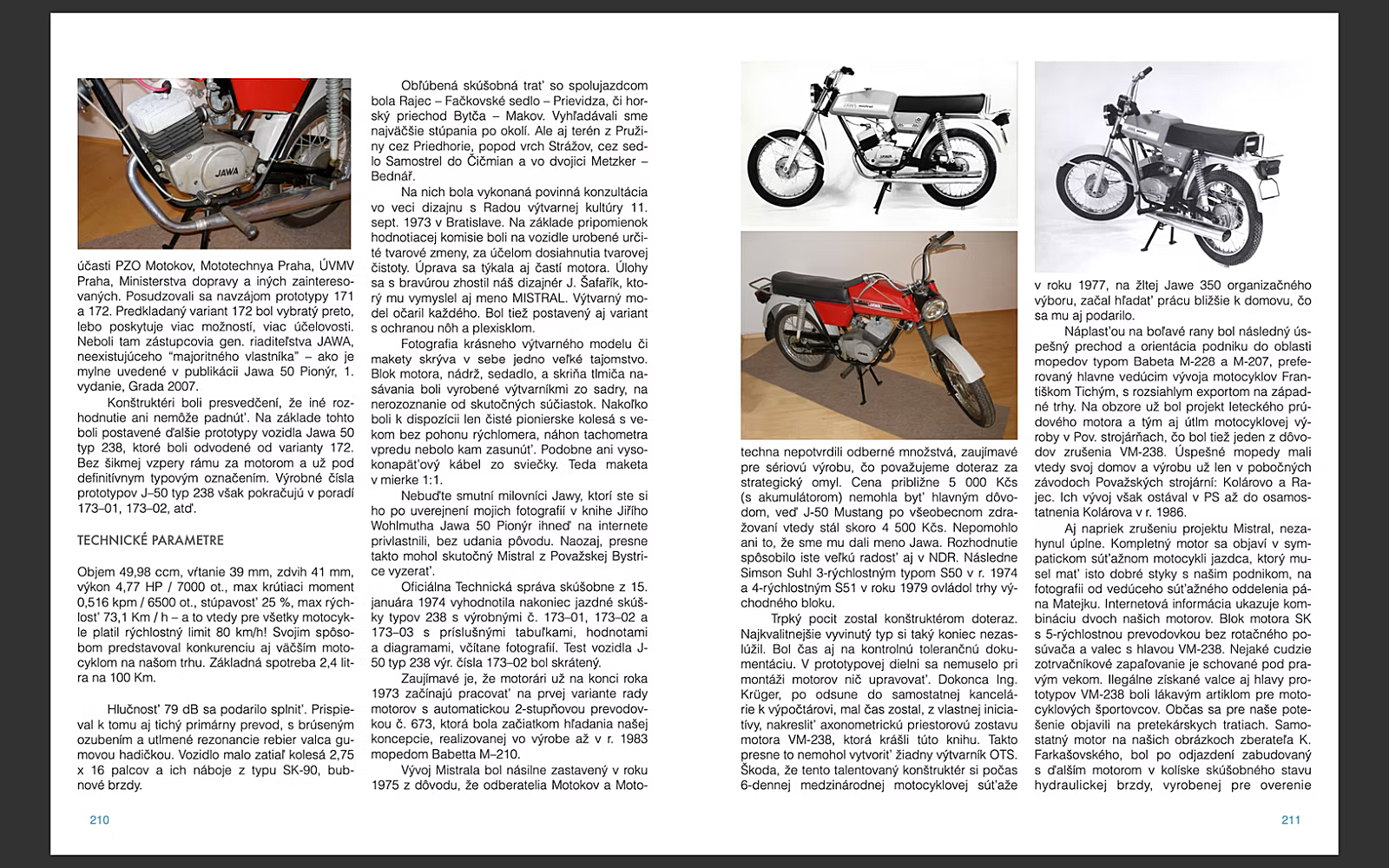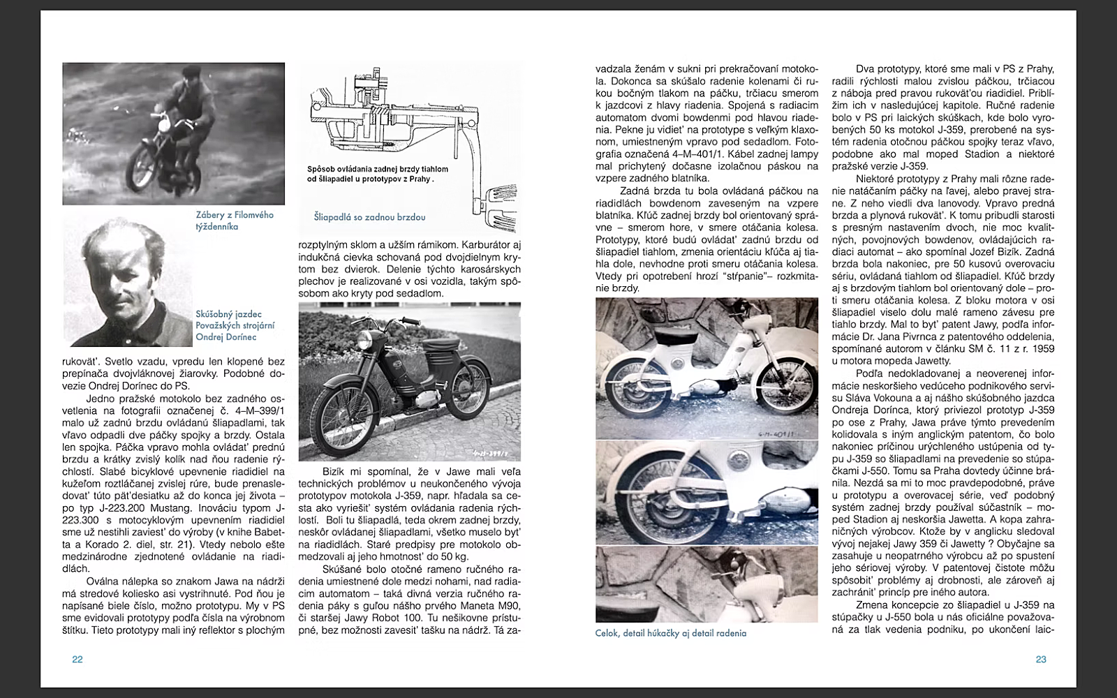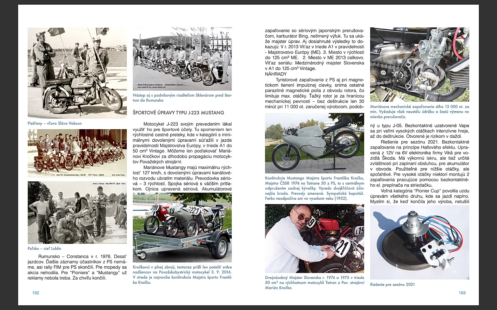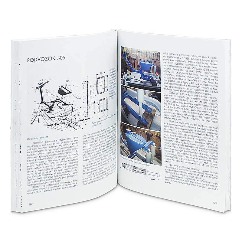 The book tells the story of the legendary Jawa 50 motorcycle, from its beginnings as the J-359 motorcycle to the iconic J-23 Mustang. It offers unknown behind-the-scenes information, previously unpublished technical documentation, and a detailed description of the development in Považská Bystrica.